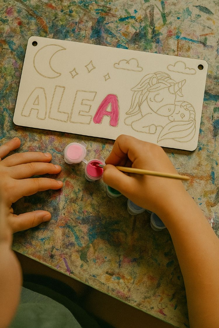 Personalisiertes Türschild aus Holz - DIY Set zum Bemalen mit Wunschmotiv & Name