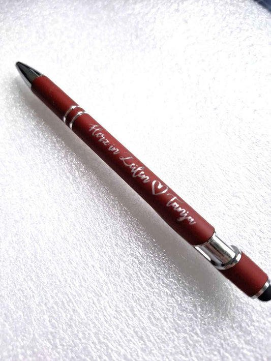 Eleganter Metall-Kugelschreiber mit Lasergravur „Herz in Zeilen“ + Name | Bordeauxrot | Touchscreen-Spitze | Persönliches Geschenk für Büro, Schule & Liebe