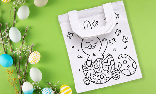 Bio-Baumwolltasche mit Osterhasen-Motiv zum Ausmalen - Fairtrade & kreativ