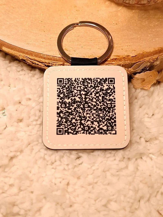 Quadratischer Buchenholz-Schlüsselanhänger mit Lasergravur & QR-Code für Notfallnummer