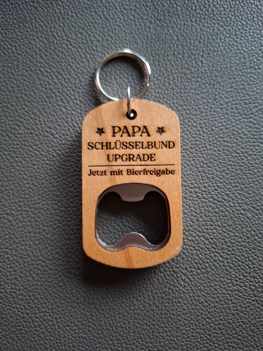 Personalisiertes Holz Schlüsselanhänger mit Flaschenöffner & Lasergravur – „Für den besten Papa"