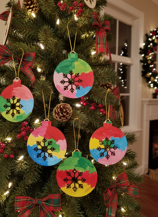Holzanhänger „Kugel mit Schneeflocke“ – 6x9 cm, lasergeschnitten, Sperrholz