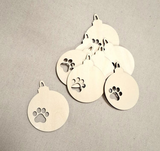 Weihnachtskugel aus Holz mit Pfotenabdruck – Lasergeschnittenes Sperrholz-Ornament zum Bemalen (7,5 x 9,5 cm)