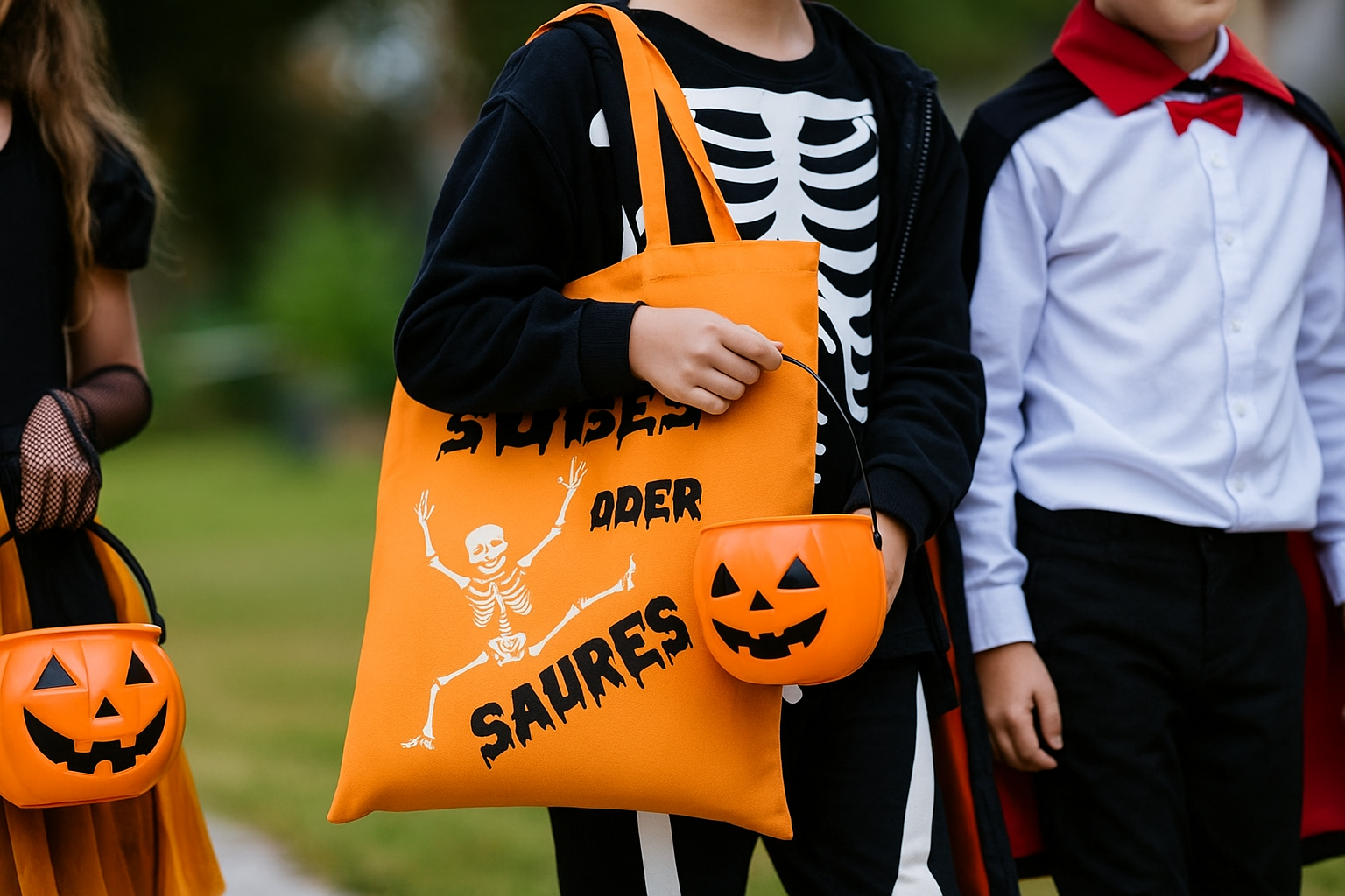 🎃 Baumwolltasche „Süßes oder Saures“ – Halloween Edition in Orange