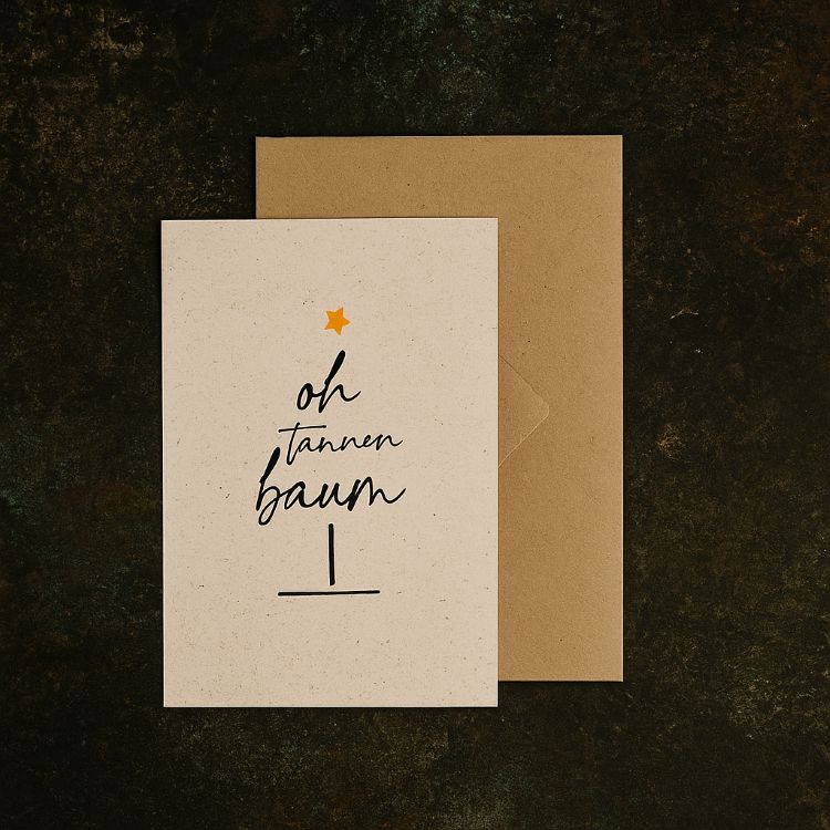 Versende deine Weihnachtsgrüße nachhaltig und stilvoll mit unserer handgemachten Weihnachtskarte „OH TANNENBAUM“. Gefertigt aus hochwertigem 275 g/m² Graspapier, verbindet sie Umweltbewusstsein mit festlicher Eleganz.