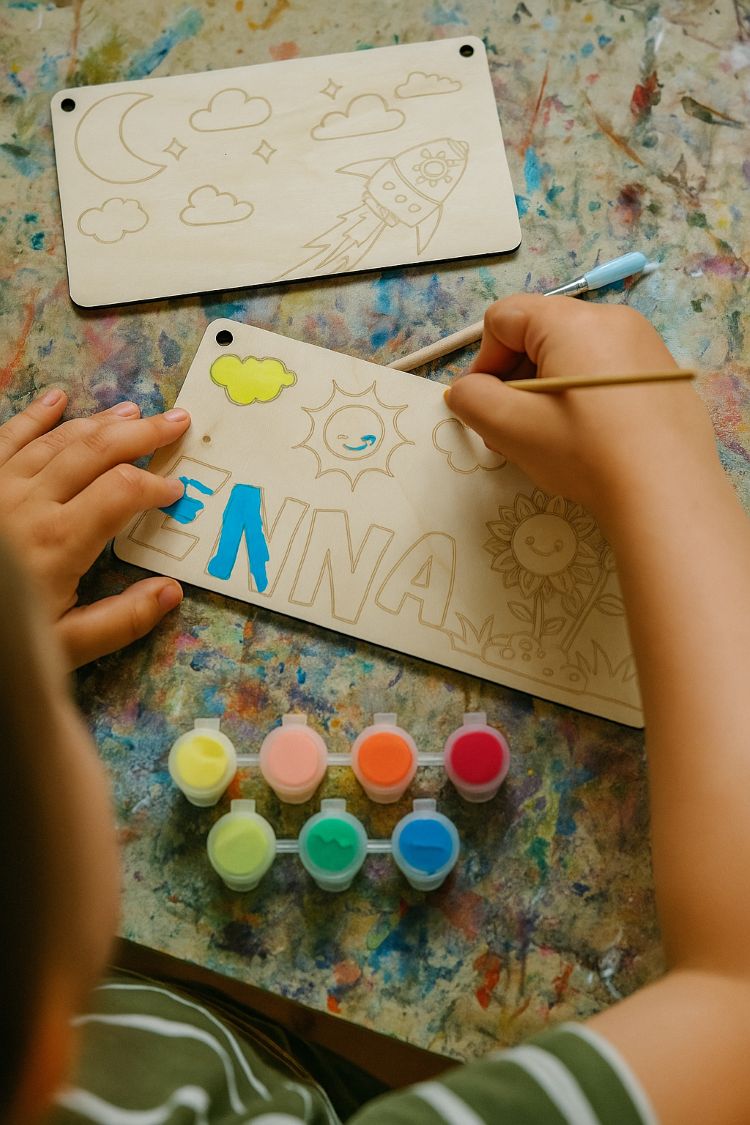Personalisiertes Türschild aus Holz - DIY Set zum Bemalen mit Wunschmotiv & Name